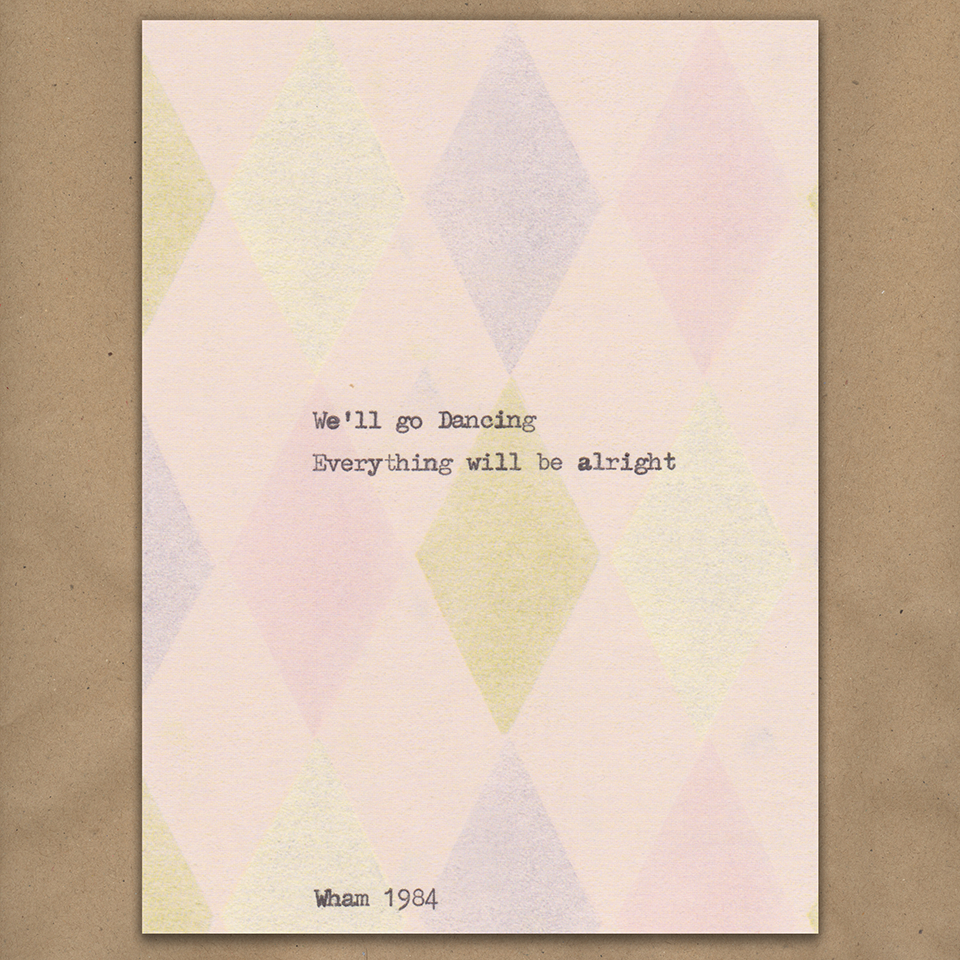 Our collection of card designs have all been typed out on my rediscovered old typewriter.