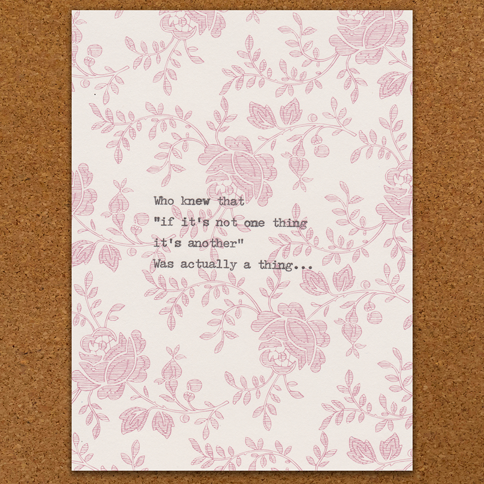 As all the cards were originally hand typed, they are all unique in their own way, from how hard the keys were hit , to how much ink hit the page and how accurate my spelling, spacing or concentration was on any specific day!