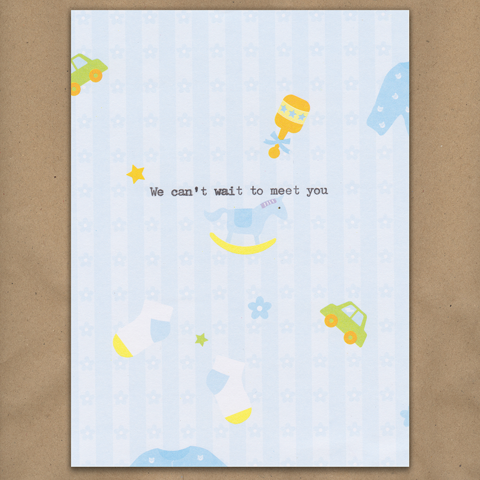 We Can't Wait to Meet You (on blue pattern)