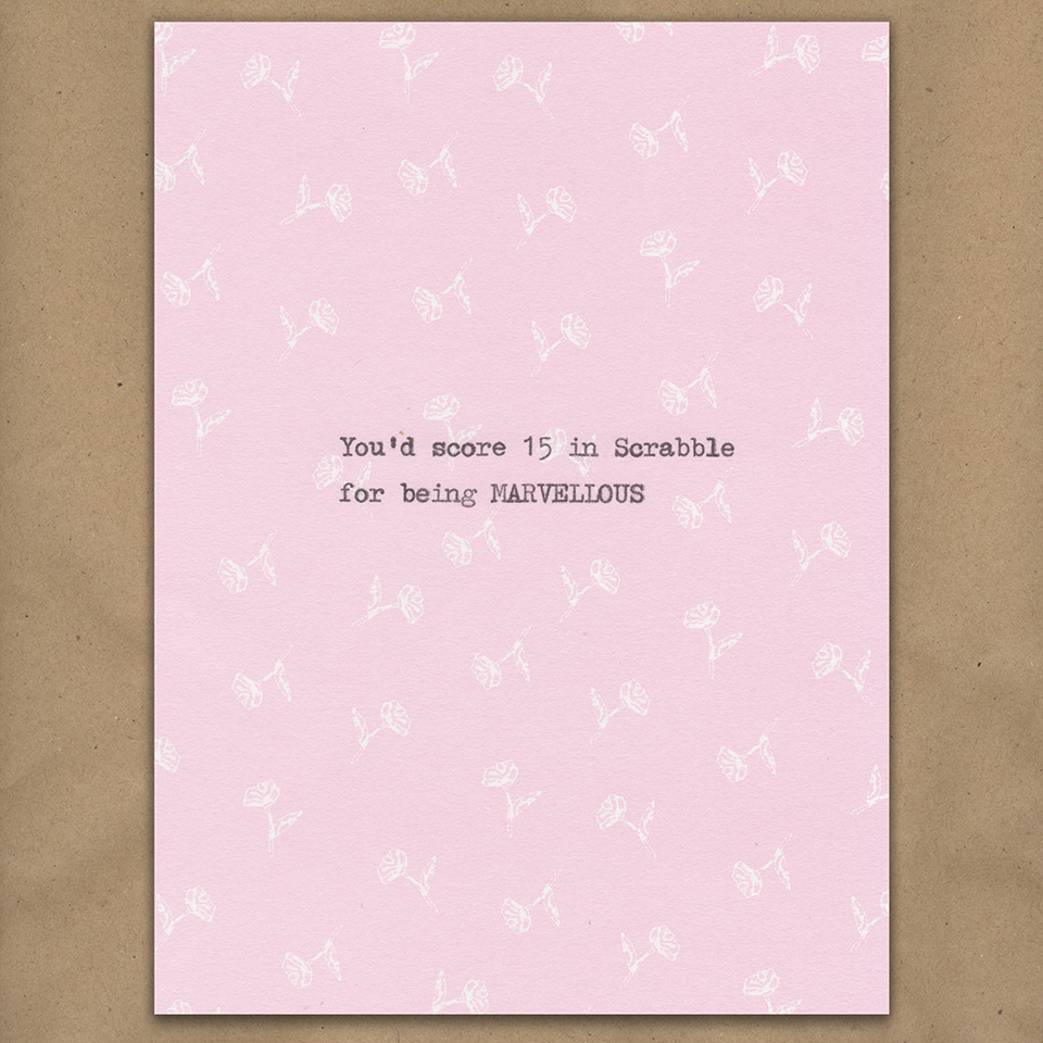 In Scrabble you'd be MARVELLOUS (on pink pattern)