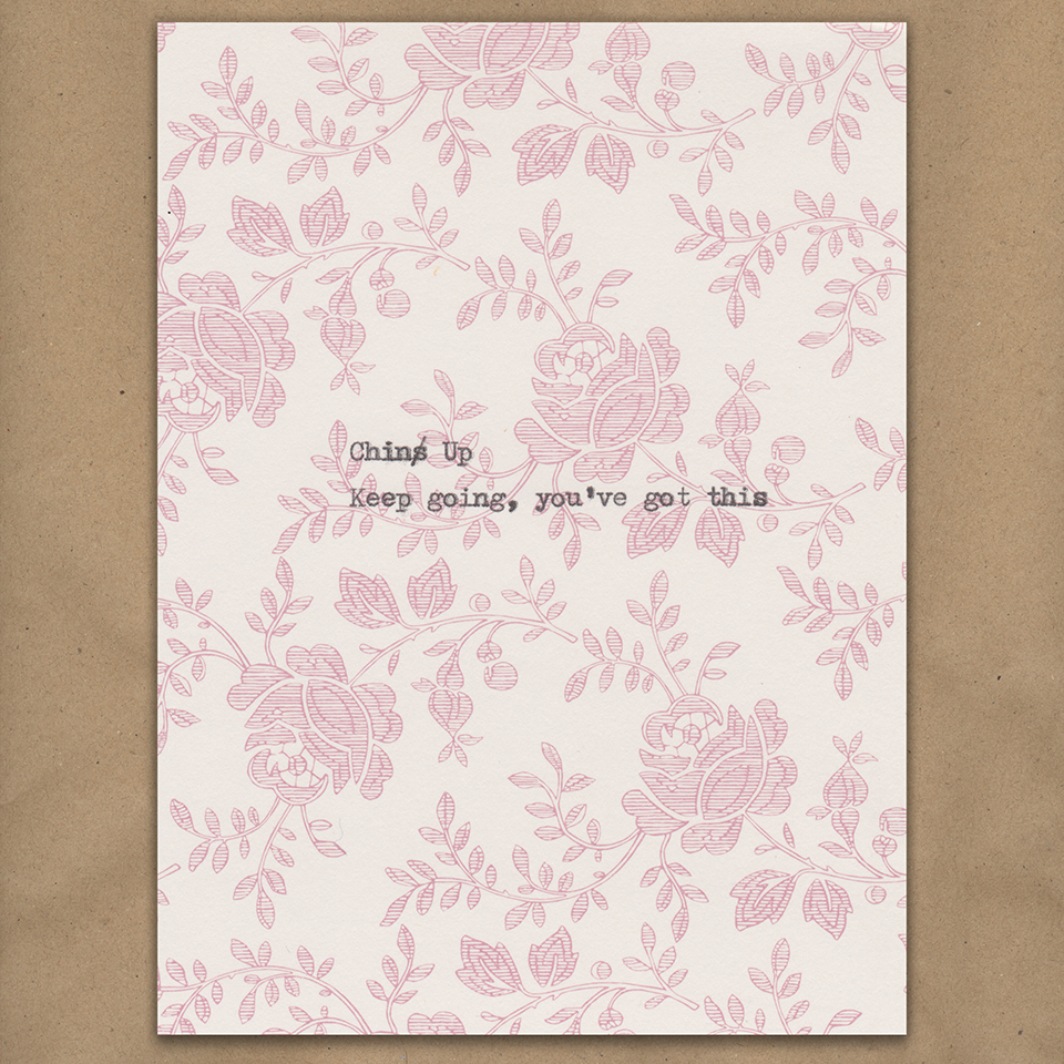 Chins Up... Keep Going (on pink rose pattern)